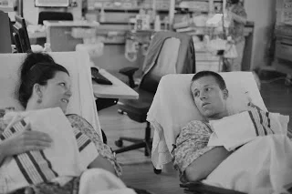 Once we reached 48 hours my contractions had almost come to a stop. The doctors decided to take me off of the Magnesium to see how my body reacted. I was allowed my first shower in days and was also able to drink as much water as I wanted! That moment was like Heaven! I was only off the Magneseum for less than a day when my contractions started again. Something was different this time, and I knew deep in my heart that our girls were going to come. My labor started for the second time around 12pm Saturday afternoon. I was dialted to a 5 and it was clear that there was no stopping my body...the doctor was called to come back to the hospital for the delivery.